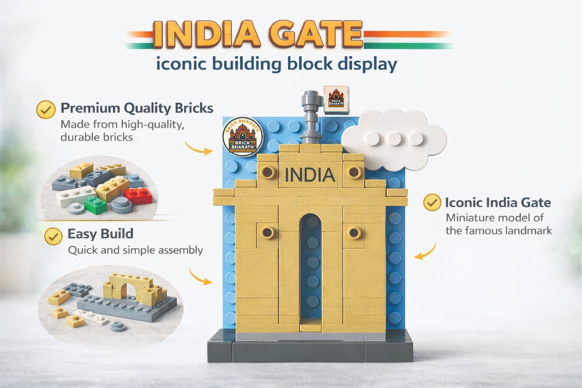 This thoughtfully crafted brick design represents India Gate as a symbol of sacrifice, courage, and respect. Today, it stands as a reminder of the cost of freedom and the importance of peace.